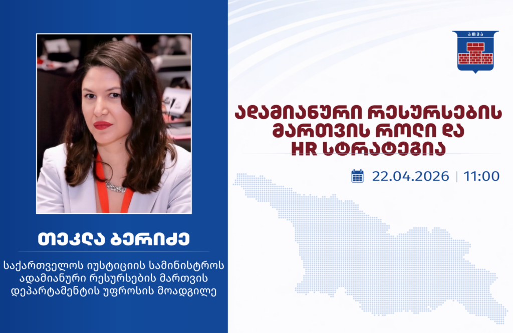 Read more ონლაინ შეხვედრების ციკლი თემაზე: ადამიანური რესურსების მართვა: სტრატეგიიდან შეფასებამდე საქართველოს ადილობრივ თვითმმართველობათა ეროვნული ასოციაცია წევრი მუნიციპალიტეტების მერიებისა და საკრებულოების... გაიგე მეტი